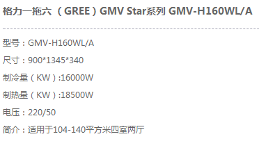 格力一拖六 (GREE)GMV Star系列 GMV-H160WL/A