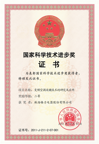 国家科学进步奖证书