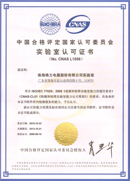 实验室认可证书