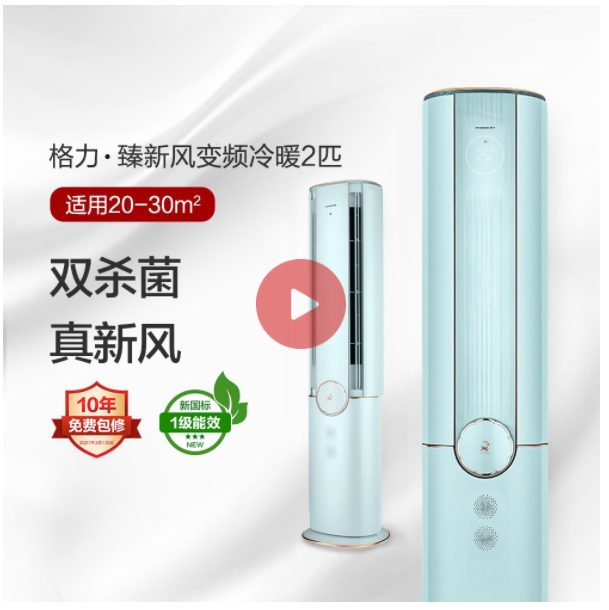 格力·臻新风变频冷暖柜机 1级能效(汝瓷青)